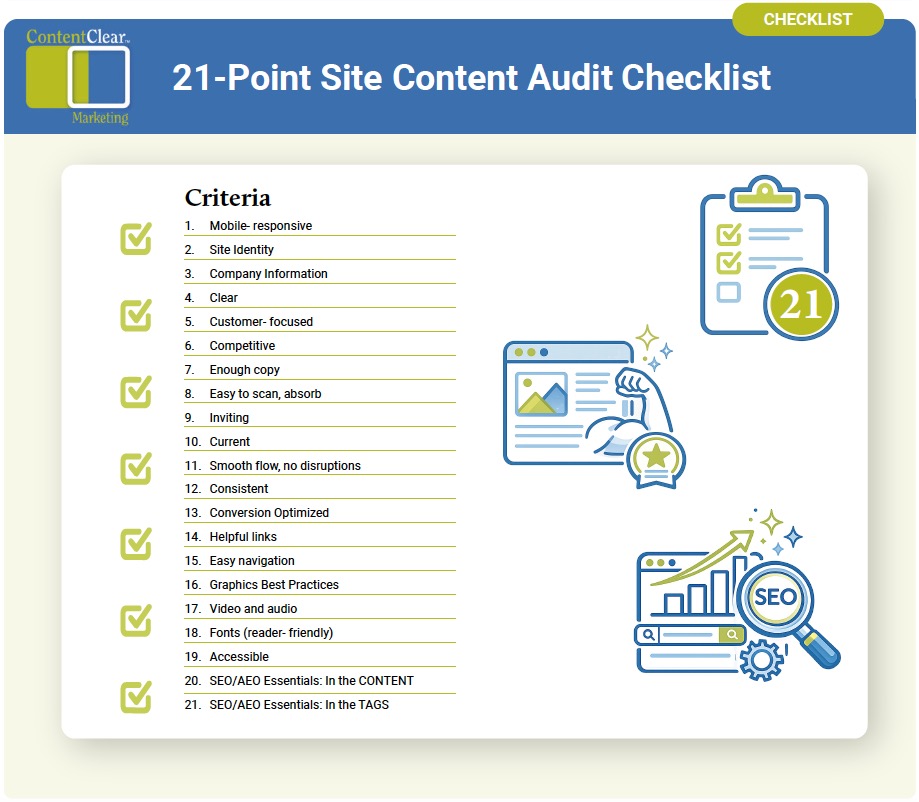 1. Current Site Content Audit and Recommendations: 21-Point Usability Checklist